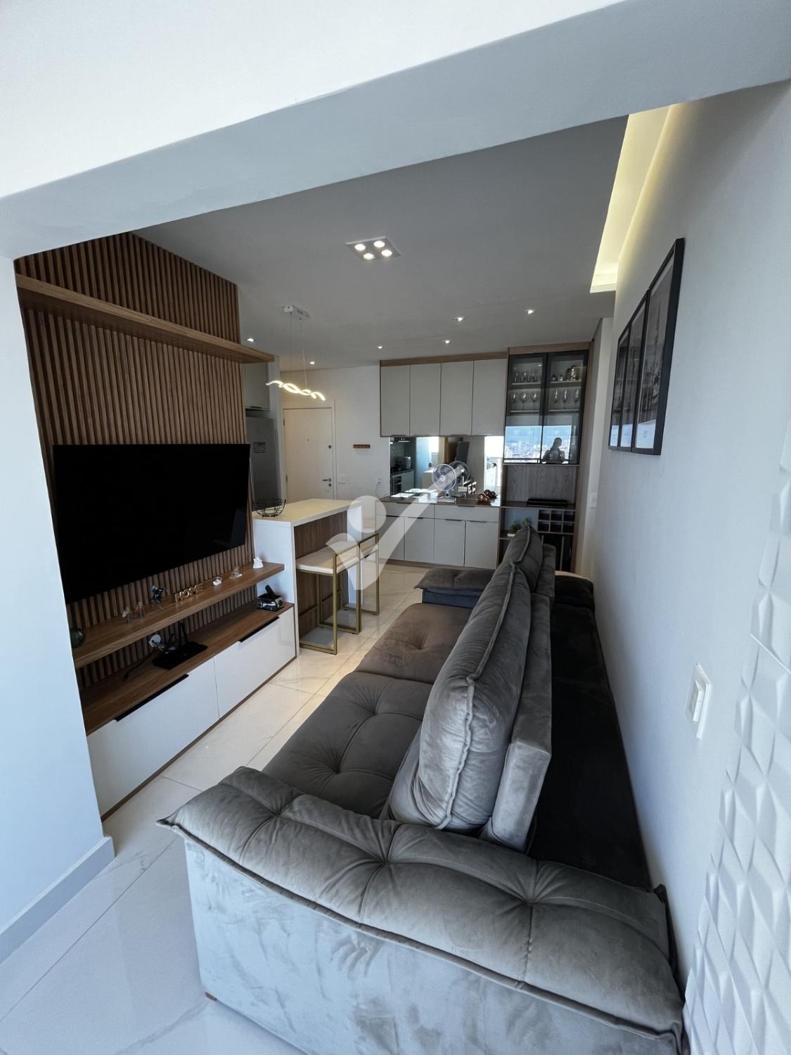 Varanda Gourmet com churrasqueira, 2 dormitórios com ar-condicionado sendo uma suíte e um quarto home-office que pode ser adaptado para quarto de criança, 2 banheiros e sala ampliada.