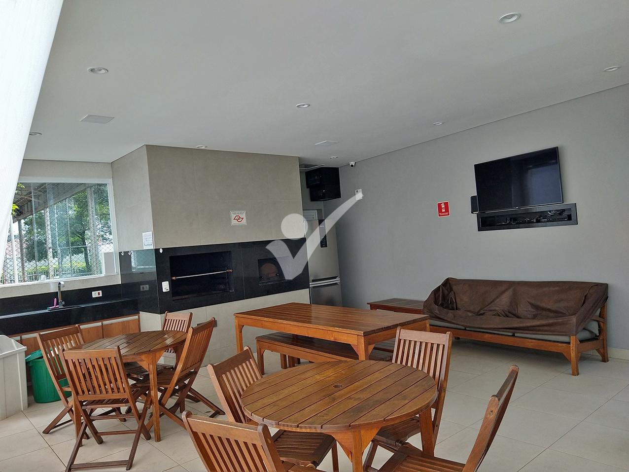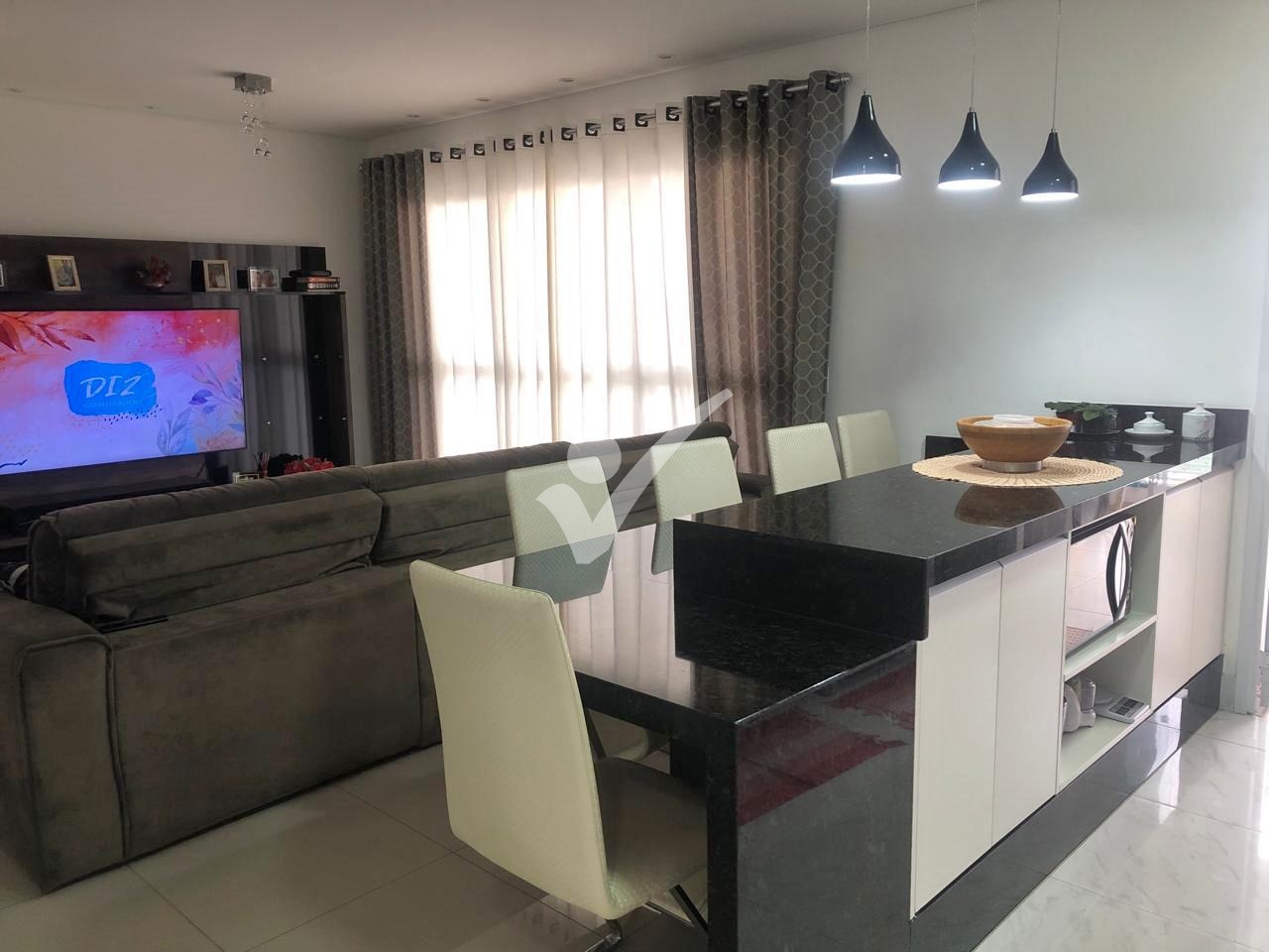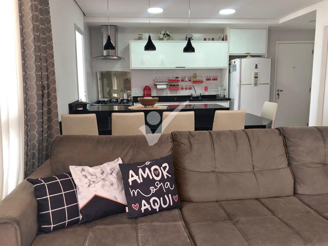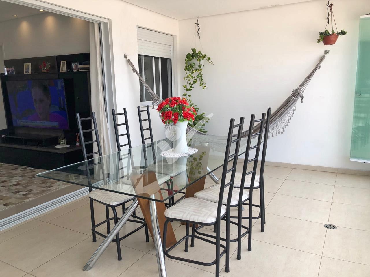 • Sala ampla para dois ambientes, integrada à varanda gourmet com fechamento em vidro