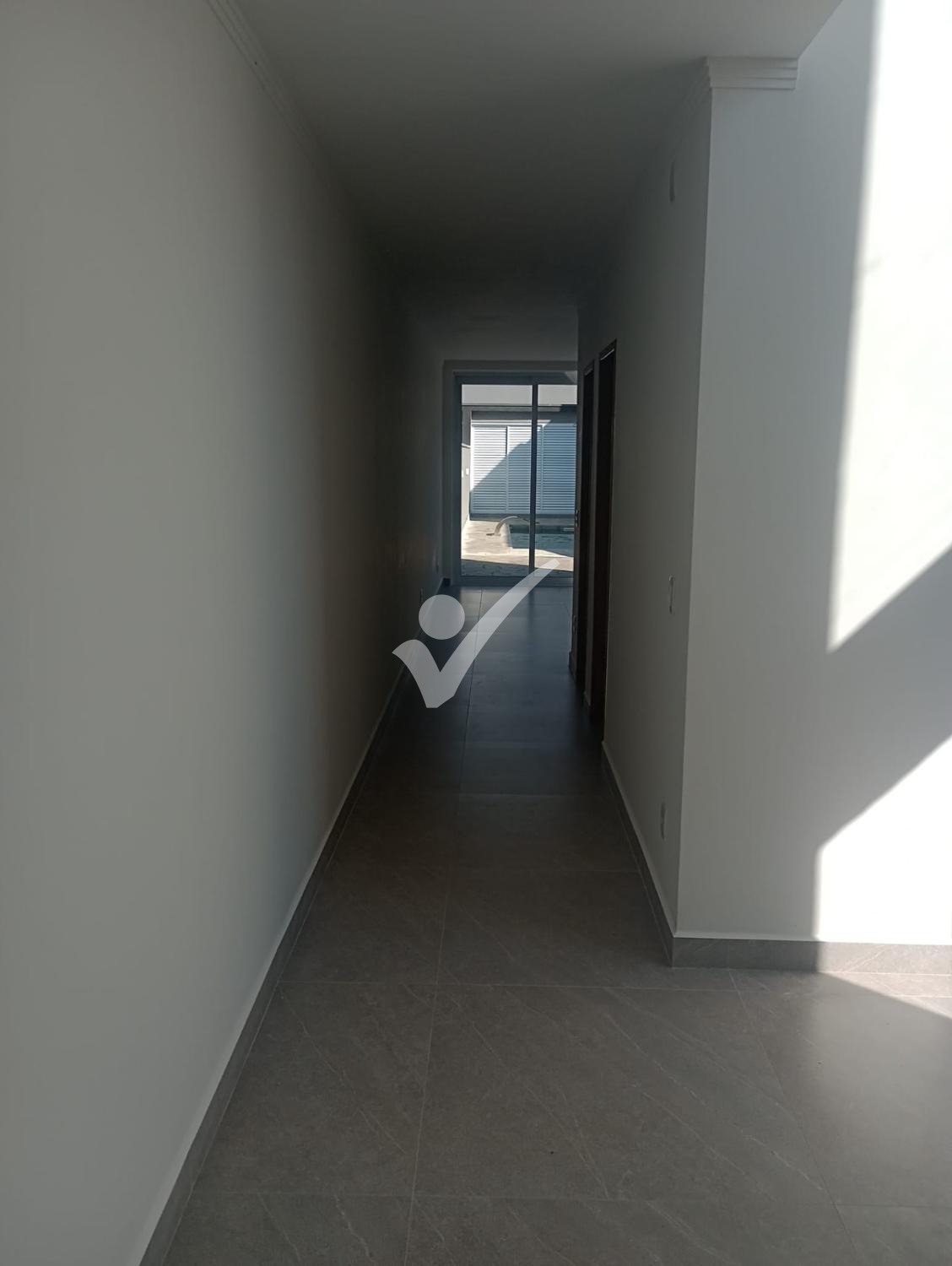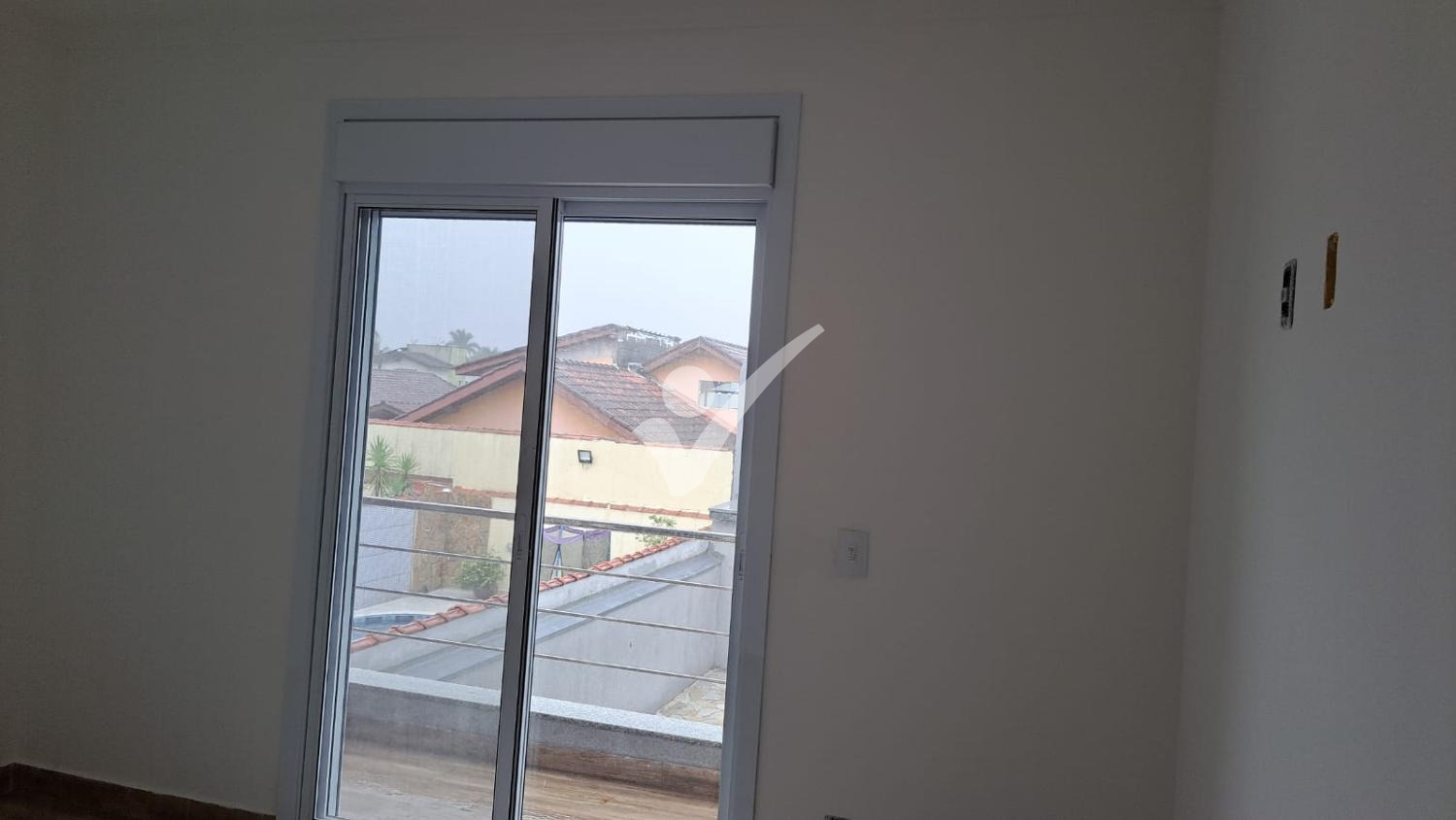 Sala ampla com janela alta e porta de acesso para área externa