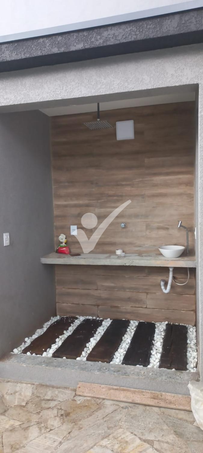 Banheiro externo com ducha na área da piscina;