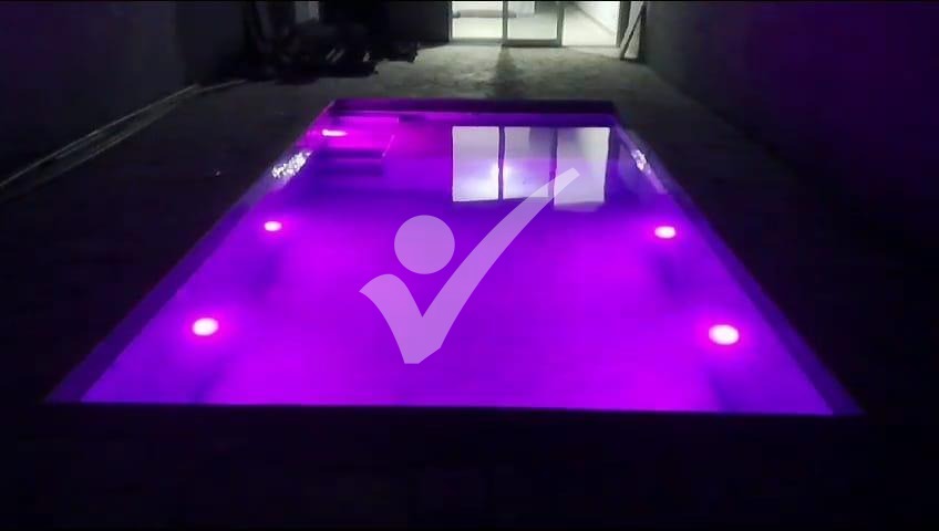 Área de lazer com piscina em alvenaria com prainha, hidromassagem, luzes com controle remoto e cascata;