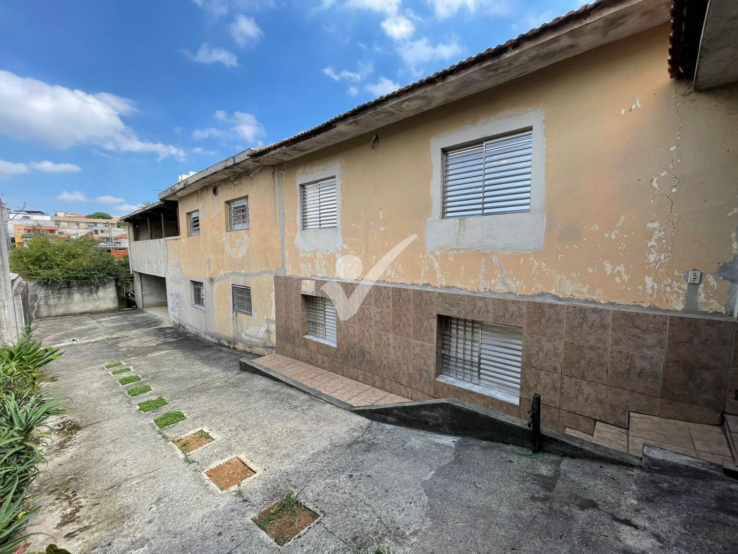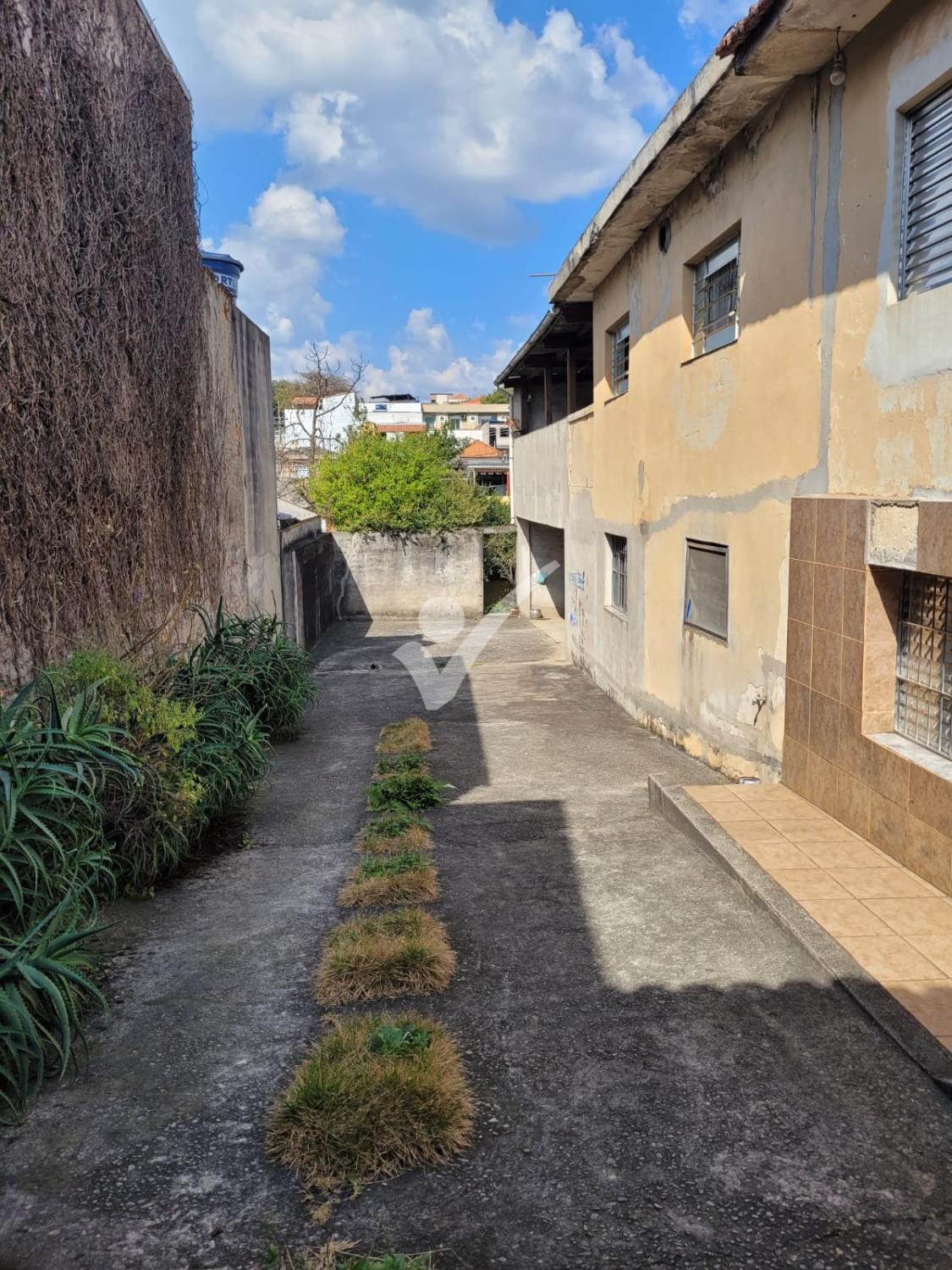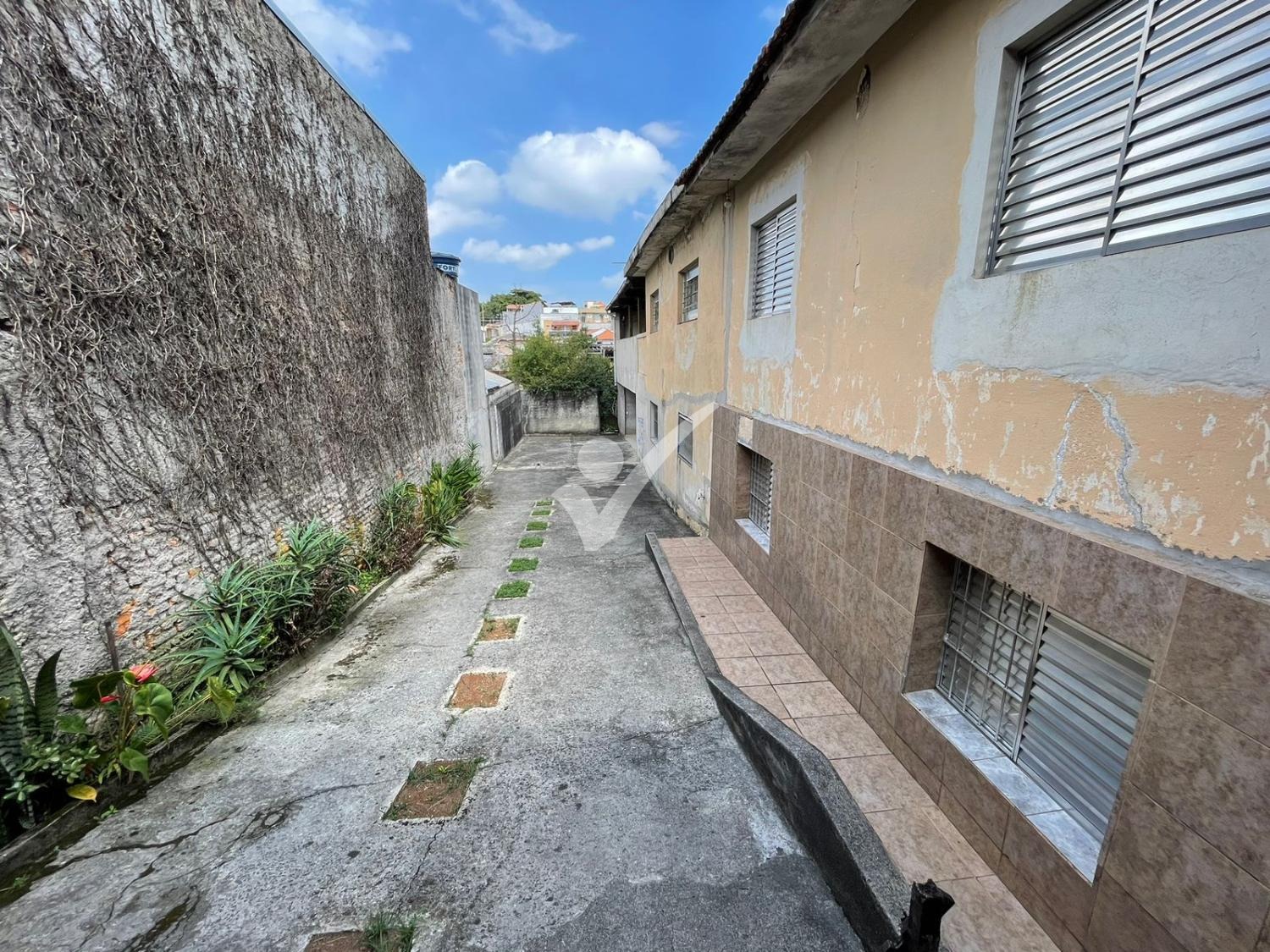 Terreno em declive medindo 10x40. Com uma casa antiga.