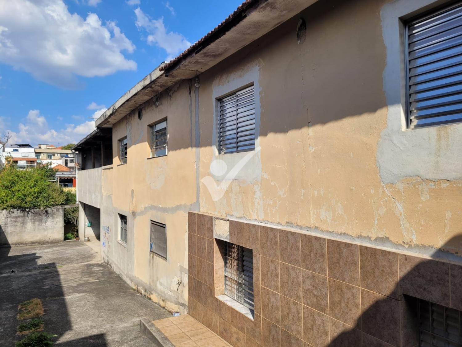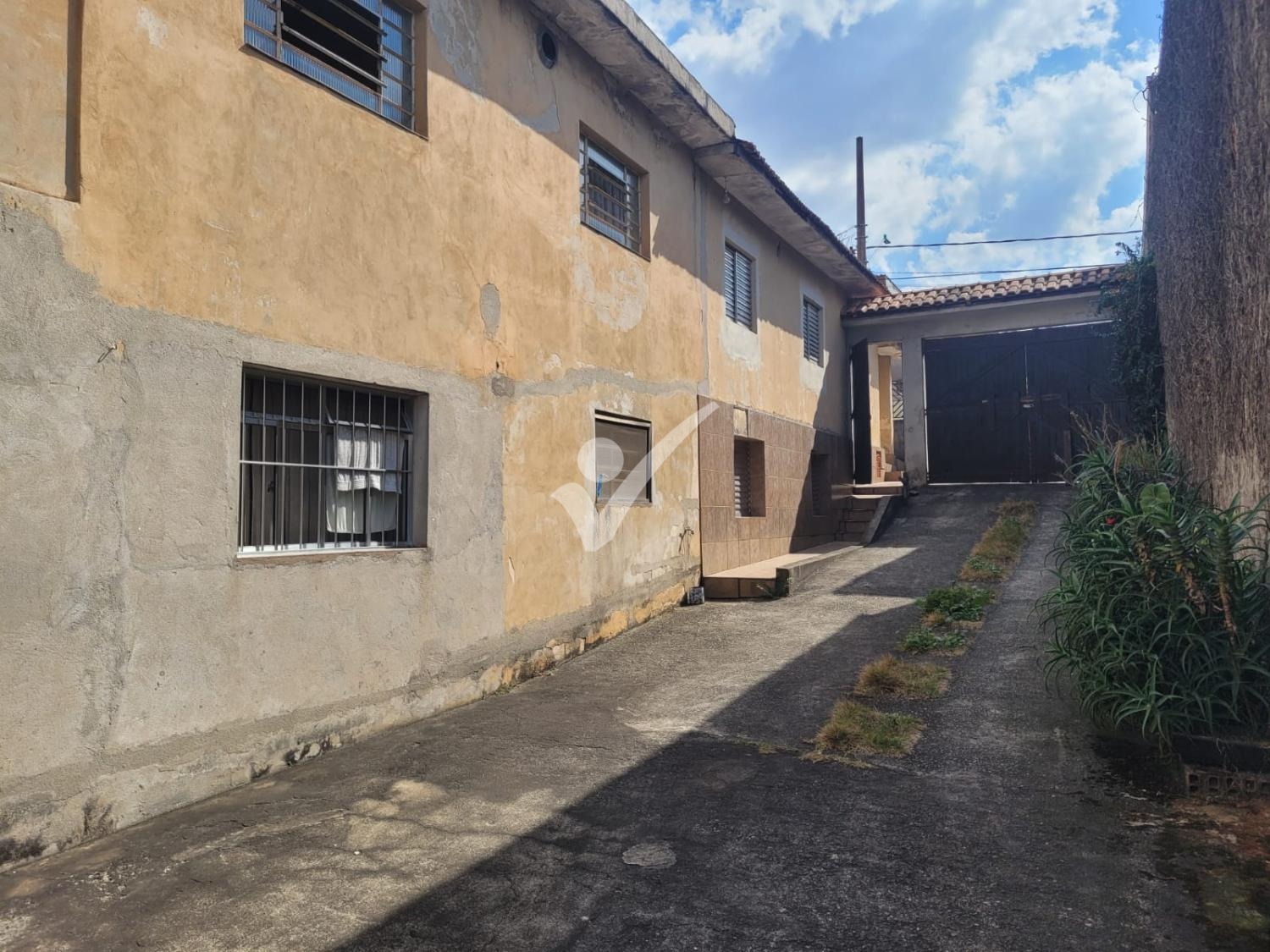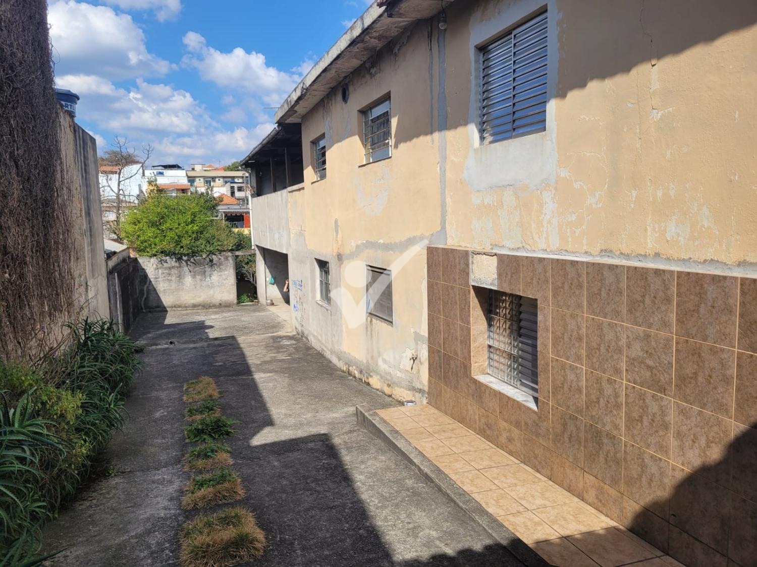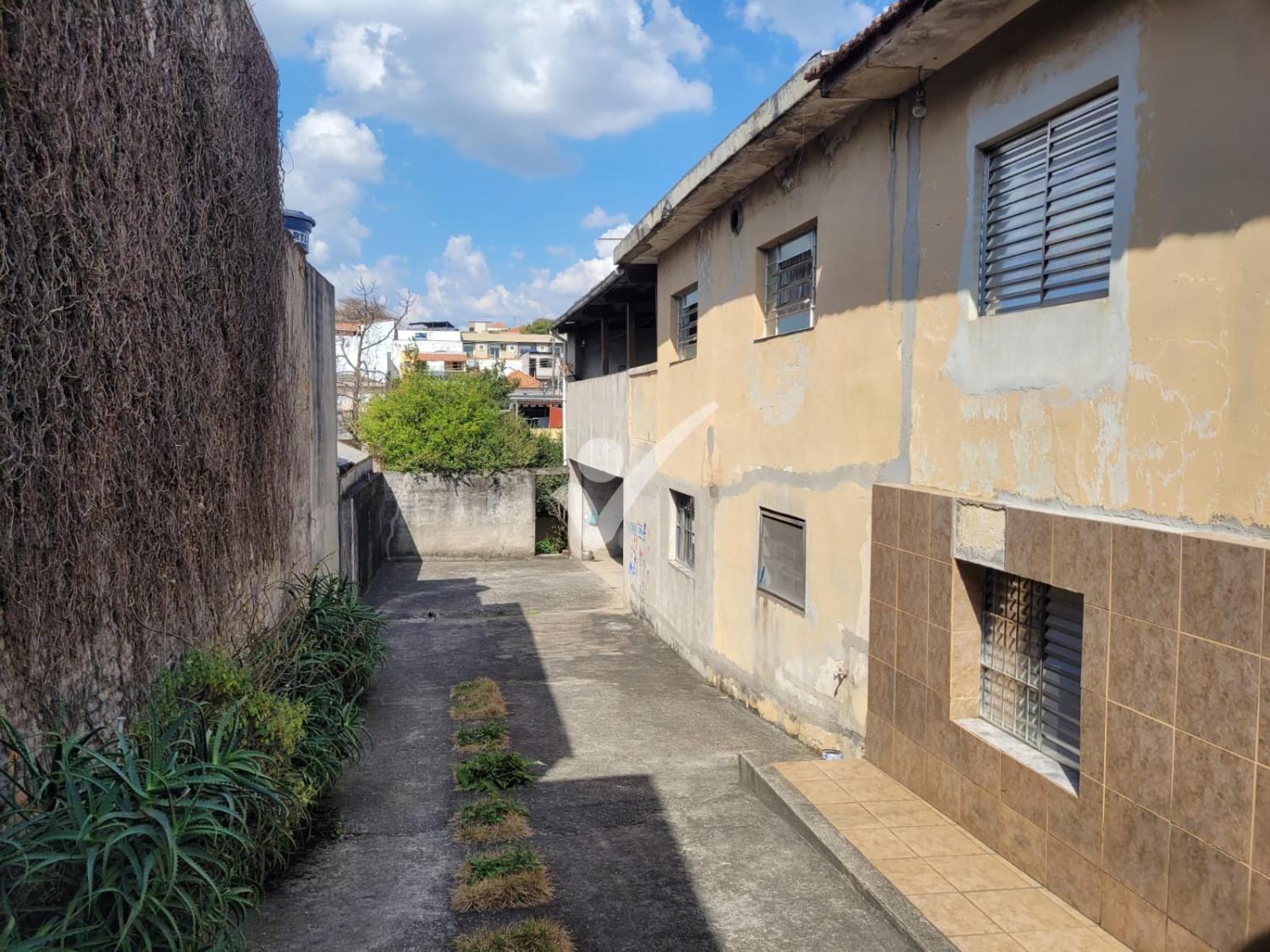 Terreno em declive medindo 10x40. Com uma casa antiga.